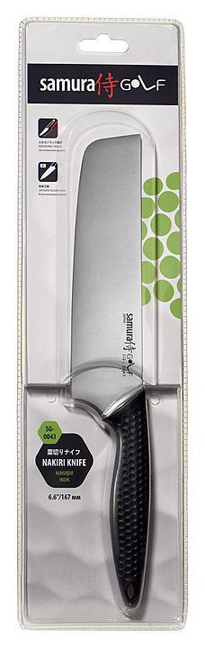 Нож накири Samura Golf SG-0043/A предназначен для мелкой шинковки, нарезки и крошения овощей и зелени на предприятиях общественного питания и торговли, в частных домах и квартирах. Эргономичная рукоятка стилизована под ребристую поверхность мяча для игры в гольф. Лезвие выполнено из качественной японской специализированной однослойной стали AUS-8, ручка - из высококачественного полипропилена. Особенности: