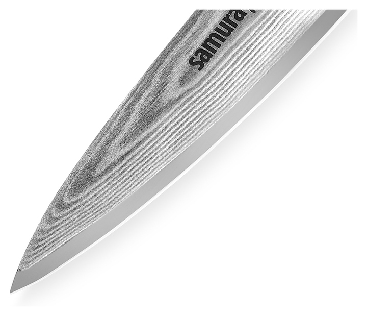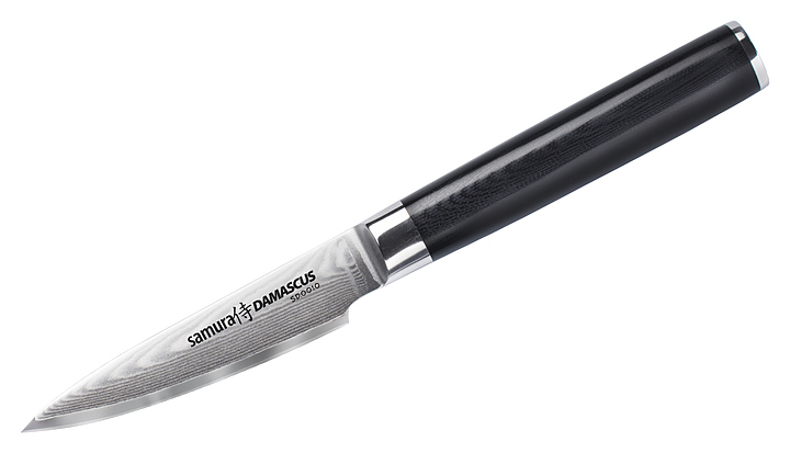Овощной нож Samura Damascus SD-0010/K предназначен для чистки и нарезки овощей и фруктов на предприятиях общественного питания и торговли, в частных домах и квартирах. Центральная часть ножа выполнена из высококачественной дамасской стали V-Gold-10 и защищена 67 слоями обкладок из более мягких сталей - благодаря этому режущая кромка долго сохраняет безупречную остроту, а сердцевина надежно защищена от механических повреждений при работе. Ручка изготовлена из стеклопластика G-10. Особенности: