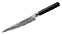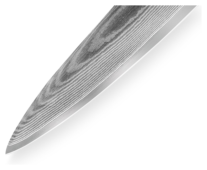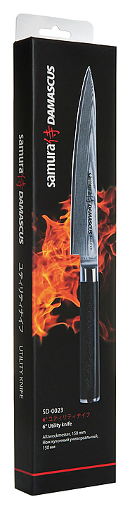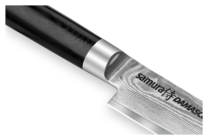 Универсальный нож Samura Damascus SD-0023/K предназначен для нарезки различных продуктов на предприятиях общественного питания и торговли, в частных домах и квартирах. Центральная часть ножа выполнена из высококачественной дамасской стали V-Gold-10 и защищена 67 слоями обкладок из более мягких сталей - благодаря этому режущая кромка долго сохраняет безупречную остроту, а сердцевина надежно защищена от механических повреждений при работе. Ручка изготовлена из стеклопластика G-10. Особенности: