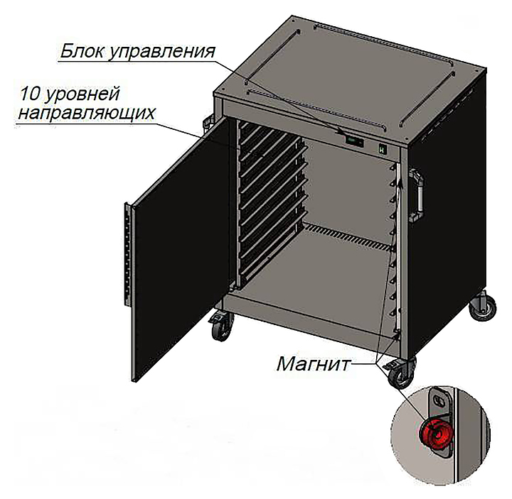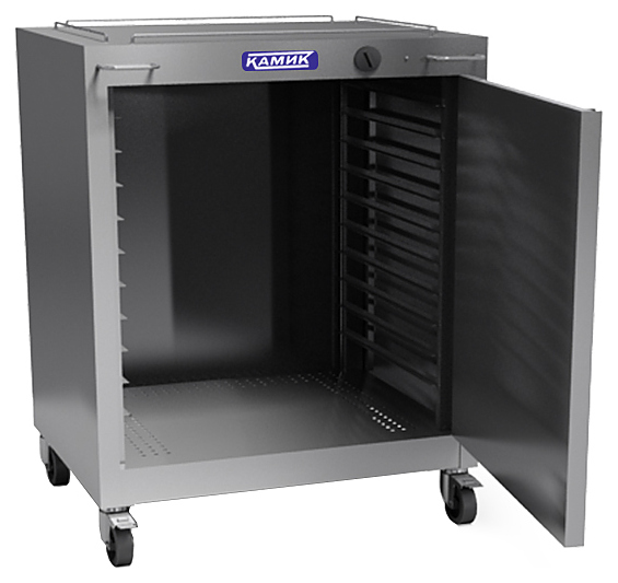 Тепловой шкаф КАМИК ШТ-7963 используется на предприятиях общественного питания и торговли для подогрева, демонстрации и кратковременного хранения готовых блюд в горячем состоянии. Модель оснащена распашной дверью с петлями слева. Корпус выполнен из нержавеющей стали AISI 304 толщиной 1 мм, столешница - из нержавеющей стали AISI 304 толщиной 1,5 мм. Особенности: