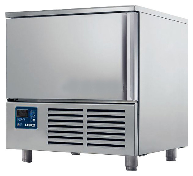 Шкаф шоковой заморозки Lainox RDM051S используется на предприятиях общественного питания, а также в продовольственных магазинах, супермаркетах и на пищевом производстве для быстрого охлаждения и заморозки большого объема продуктов питания с сохранением их первоначальных свойств. Резкое изменение температуры препятствует росту бактерий без потери влажности пищи. Модель оснащена электронным управлением, встроенным холодильным агрегатом, вентилятором с косвенным обдувом, подогреваемым температурным датчиком-щупом, съемными направляющими и дверцей с эргономичной ручкой и магнитными прокладками по периметру. Корпус изготовлен из нержавеющей стали AISI 304 18/10 с пенополиуретановой теплоизоляцией без ГХФУ плотностью 42 кг/м3,, испаритель - из меди и алюминия. Режимы работы: