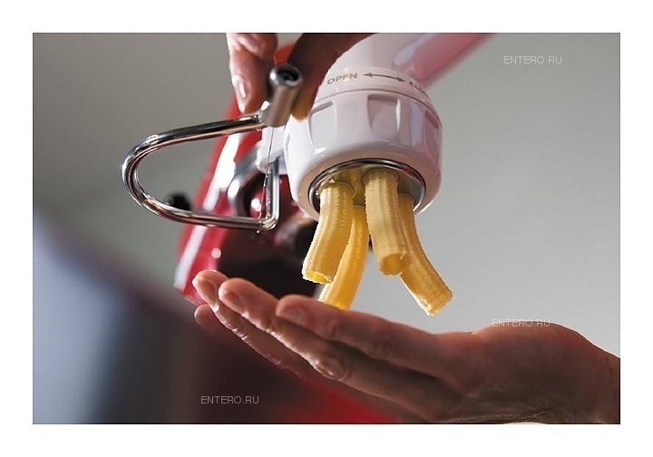 Насадка-пресс KitchenAid 5KSMVSA предназначена для приготовления макаронных изделий различных видов, таких как спагетти, букатини, ригатони, фузилли, крупные и мелкие макароны в частных домах и квартирах. Аксессуар подходит для планетарных миксеров KitchenAid. Особенности: