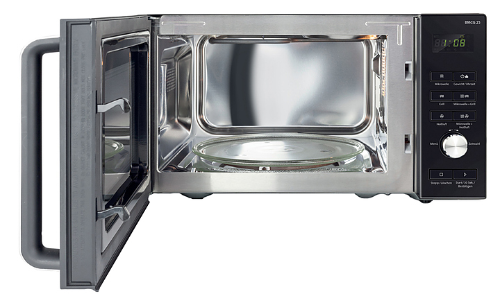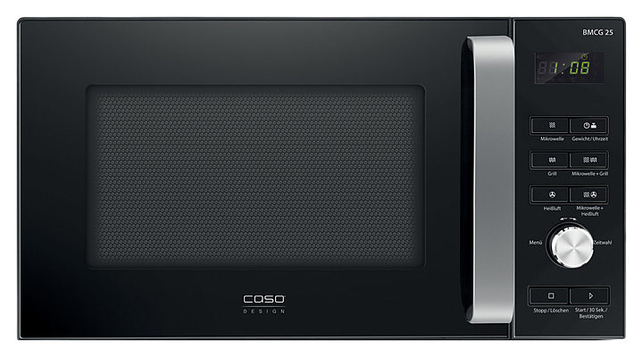 Микроволновая печь с грилем и конвекцией CASO BMCG25 предназначена для разогрева, размораживания и приготовления продуктов в частных домах, квартирах, отелях и офисах. Модель оснащена полуцифровой панелью управления с красными иконками и дисплем с часами. Внутреннее покрытие выполнено из нержавеющей стали, ручка - из алюминия, вращающаяся тарелка - из стекла. Режимы работы: