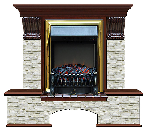 Камин Glenrich Бостон К Fobos BR предназначен для украшения и обогрева помещений в загородных домах и ресторанах. Камин выполнен в классическом стиле с отделкой камнем. Топка имеет кованую декоративную решетку. Модель оснащена функцией диммер (эффект затухания и возгорания пламени) и звуковым эффектом горения. Комплектация: