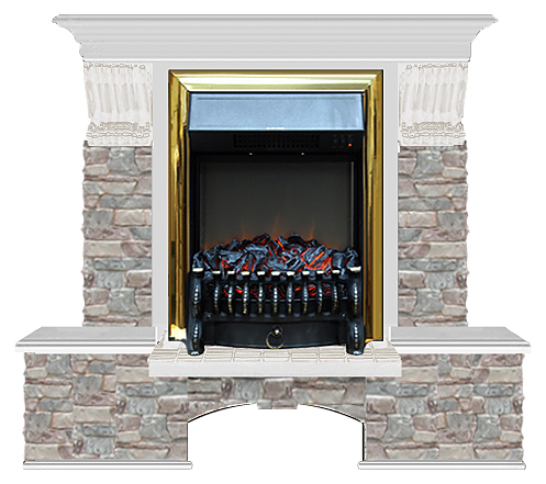Камин Glenrich Бостон К Fobos BR предназначен для украшения и обогрева помещений в загородных домах и ресторанах. Камин выполнен в классическом стиле с отделкой камнем. Топка имеет кованую декоративную решетку. Модель оснащена функцией диммер (эффект затухания и возгорания пламени) и звуковым эффектом горения. Комплектация: