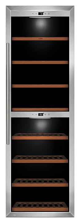 Винный шкаф CASO WineComfort 1800 Smart предназначен для охлаждения и длительного хранения бутилированного и разливного вина в частных домах, квартирах, отелях и офисах. Модель оснащена 2 температурными зонами для красного и белого вина с активным вентилятором в каждой, сенсорной панелью управления с возможностью удаленного управления через приложение Wi-Fi Smart Control и 8 деревянными съемными полками на подшипниках. Дверная рама и ручка выполнены из нержавеющей стали, дверца - из трехслойного изолирующего стекла с УФ-фильтром. Особенности: