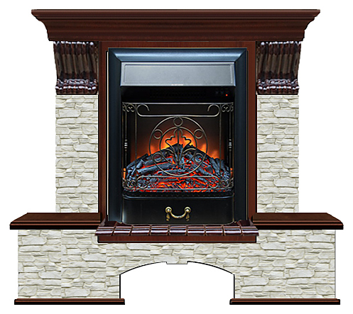 Камин Glenrich Бостон К Majestic BL предназначен для украшения и обогрева помещений в загородных домах и ресторанах. Камин выполнен в классическом стиле с отделкой камнем. Топка имеет оригинальную решетку из стали круглого сечения и имитацию зольного ящика. Модель оснащена функцией диммер (эффект затухания и возгорания пламени) и звуковым эффектом горения. Комплектация: