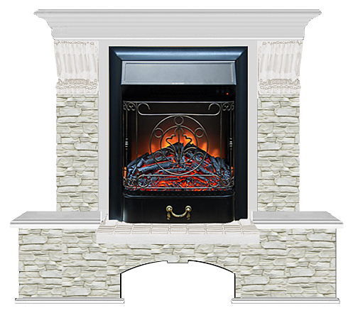 Камин Glenrich Бостон К Majestic BL предназначен для украшения и обогрева помещений в загородных домах и ресторанах. Камин выполнен в классическом стиле с отделкой камнем. Топка имеет оригинальную решетку из стали круглого сечения и имитацию зольного ящика. Модель оснащена функцией диммер (эффект затухания и возгорания пламени) и звуковым эффектом горения. Комплектация: