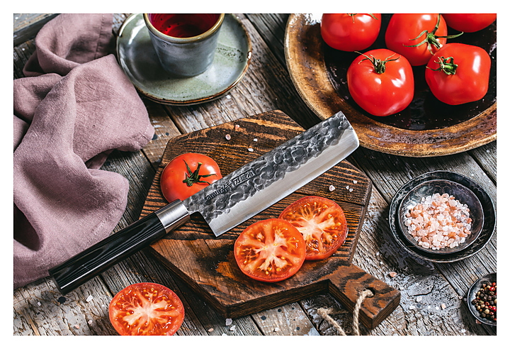 Нож накири Samura Blacksmith SBL-0043C/Y предназначен для мелкой шинковки, нарезки и крошения овощей и зелени на предприятиях общественного питания и торговли, в частных домах и квартирах. Прекрасно держит заточку, идеально подходит для интенсивного использования, а также надолго сохраняет отличный внешний вид. Лезвие изготовлено методом ручной ковки из высокоуглеродистой стали AUS-8, которая проходит длительную обработку на специальном прессе, ручка - из прочной микарты. В комплект поставки входят гвоздичное масло, салфетка, подарочная коробка и тканевая упаковка в японском стиле Japanese Knife Roll. Особенности: