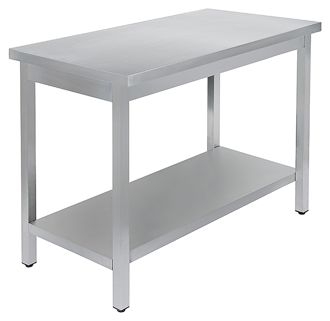 Островной производственный стол Luxstahl СПУ-19/6 предназначен для раскатки теста и обработки ингредиентов для приготовления блюд на предприятиях общественного питания и торговли. Каркас и столешница выполнены из нержавеющей стали AISI 430, ножки - из трубы AISI 430 40x40 мм. Особенности: