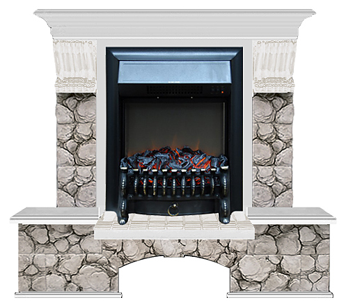 Камин Glenrich Бостон К Fobos BL предназначен для украшения и обогрева помещений в загородных домах и ресторанах. Камин выполнен в классическом стиле с отделкой камнем. Топка имеет кованую декоративную решетку. Модель оснащена функцией диммер (эффект затухания и возгорания пламени) и звуковым эффектом горения. Комплектация: