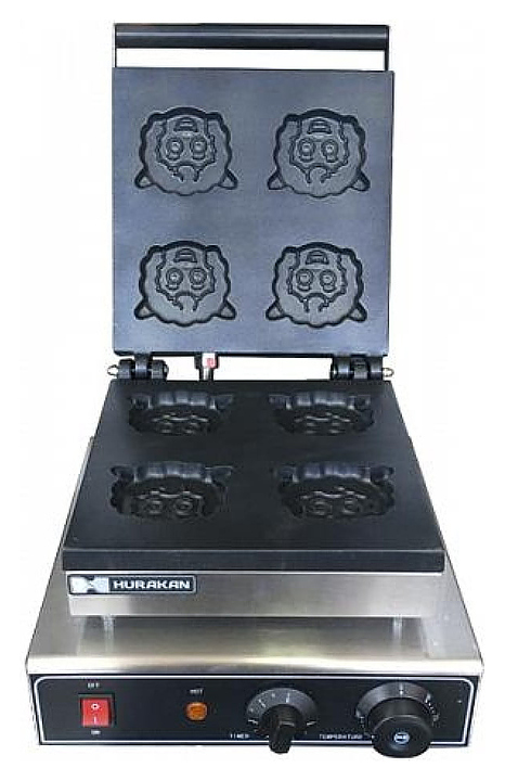 Вафельница Hurakan HKN-GES12 SHEEP используется на предприятиях общественного питания и торговли для приготовления вафель в форме овечки. Модель оснащена регулируемым термостатом. Корпус выполнен из нержавеющей стали, рабочая поверхность - из чугуна с антипригарным покрытием. Дополнительные характеристики: