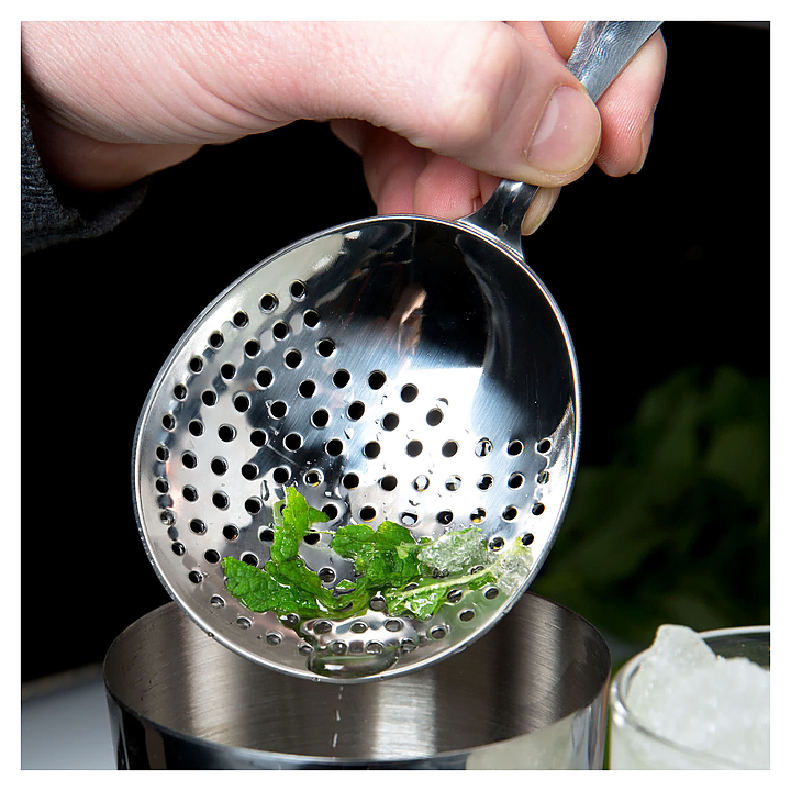 Стрейнер-джулеп BARFLY M37028 предназначен для фильтрации льда и других крупных ингредиентов коктейлей при переливании их в бокал после приготовления на предприятиях общественного питания и торговли, а также в домашних условиях. Изделие выполнено из качественной и устойчивой к коррозии хромоникелевой стали 18/8, которая легко моется и не впитывает запахов. Особенности: