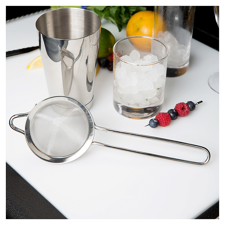 Сито BARFLY M37025 используется на предприятиях общественного питания и торговли, а также в домашних условиях для фильтрации льда и других крупных ингредиентов напитков и коктейлей при переливании их в бокал, стакан или фужер. Изделие имеет коническую форму и оснащено удобной ручкой и выступом для крепления на посуде. Сито выполнено из качественной и устойчивой к коррозии хромоникелевой стали 18/8, которая легко моется и не впитывает запахов. Дополнительные характеристики: