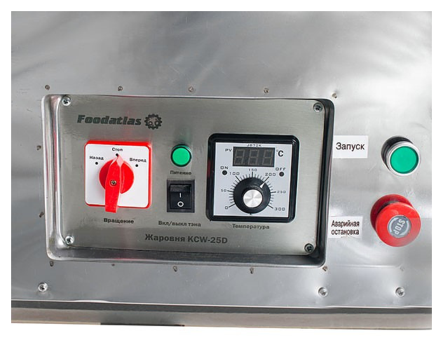 Жаровня Foodatlas KCW-25D используется на предприятиях общественного питания и торговли для обжарки и сушки семечек, орехв, кофе, круп и других мелкозернистых сыпучих продуктов. Модель оснащена механической панелью управления, расположенными внизу ТЭНами, крышкой и 4 колесами. Корпус выполнен из нержавеющей стали 430, двигатель - из меди. Особенности: