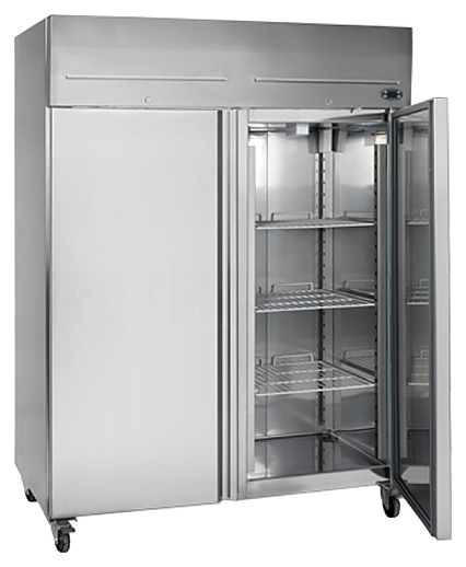 Холодильный шкаф TEFCOLD RK1420 предназначен для охлаждения и кратковременного хранения алкогольных и безалкогольных напитков и скоропортящихся продуктов на предприятиях общественного питания и торговли. Модель оснащена 6 регулируемыми полками GN 2/1, 4 колесами, 2 из которых со стопорами и 2 самозакрывающимися дверьми с замком. Корпус и внутренняя обшивка выполнены из нержавеющей стали AISI 304. Особенности: