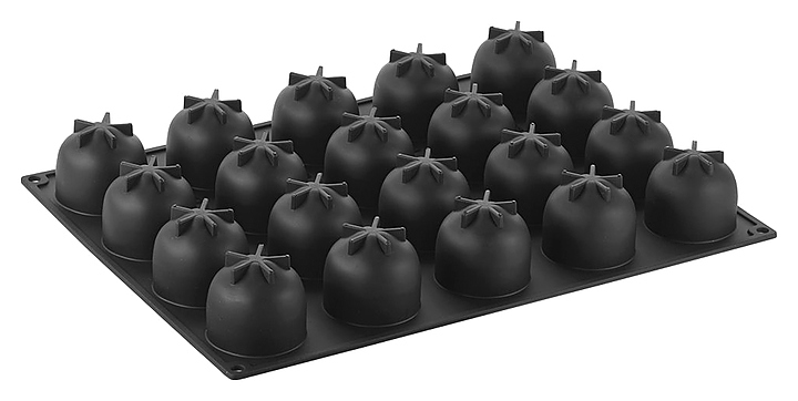 Форма для пирожных Pavoni PAVOFLEX PX4332 Мандарин используется в пекарнях и кондитерских, на предприятиях пищевой промышленности и общественного питания для выпекания или заморозки различных десертов из жидкого теста, мусса, шоколада, желе, суфле или мороженого. Модель позволяет получить продукт в объемном виде. Изделие выполнено из силикона, который обладает высокой гибкостью, легко моется и способен выдерживать температуру от -40 до 280 °С. Дополнительные характеристики: