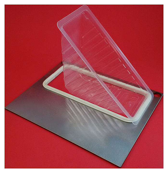 Форма VASSILII № c018 используется совместно с запайщиком лотков Compact на предприятиях общественного питания и торговли для запайки полипропиленовых контейнеров для бутербродов треугольной формы. Характеристики: