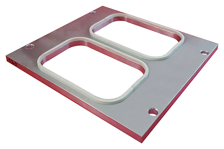 Форма VASSILII № 0130 с 2 отверстиями используется совместно с запайщиком лотков 200х273 мм на предприятиях общественного питания и торговли для запайки полипропиленовых контейнеров прямоугольной формы. Характеристики: