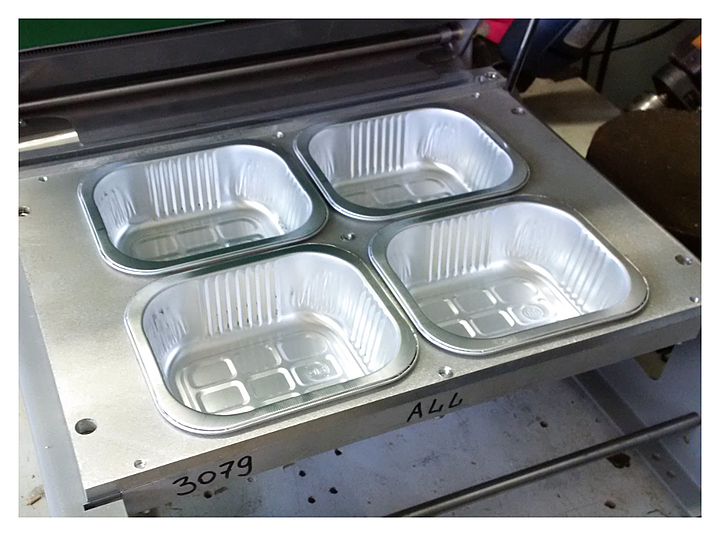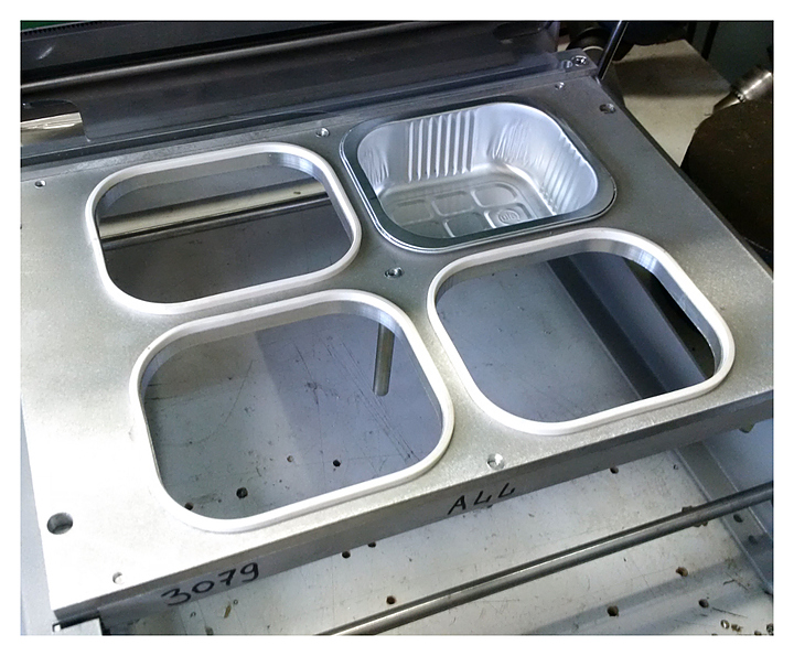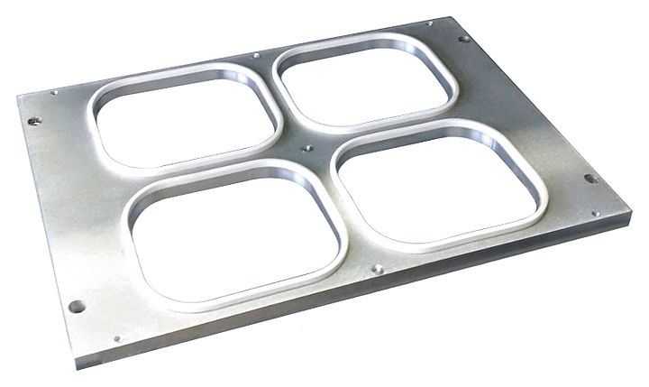 Форма VASSILII № 3079 с 4 отверстиями используется совместно с запайщиком лотков 360 на предприятиях общественного питания и торговли для запайки алюминиевых контейнеров прямоугольной формы. Характеристики: