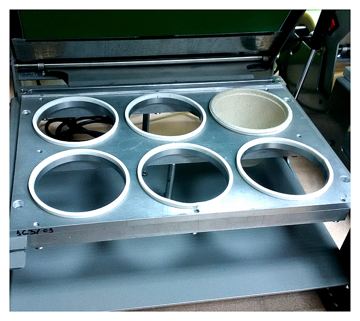 Форма VASSILII № 3163 с 6 отверстиями используется совместно с запайщиком лотков 360 на предприятиях общественного питания и торговли для запайки полипропиленовых контейнеров круглой формы. Характеристики: