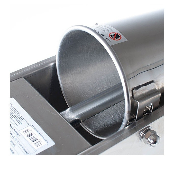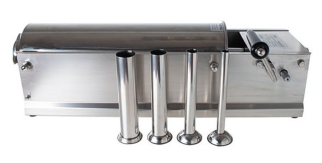 Шприц для колбас Foodatlas HS-7L используется на предприятиях общественного питания и торговли для наполнения колбас, сосисок, сарделек и шпикачек. Модель оснащена ручным управлением и имеет горизонтальное исполнение. Корпус выполнен из нержавеющей стали 304. В комплект поставки входят 4 иглы: Ø 16, 22, 32 и 38 мм. Особенности: