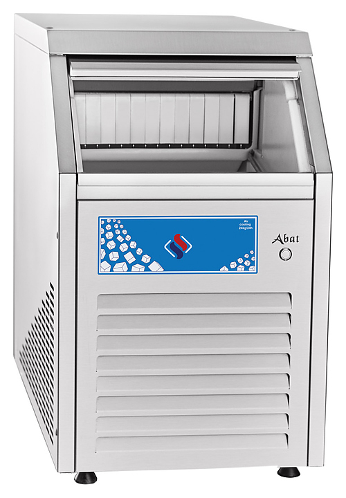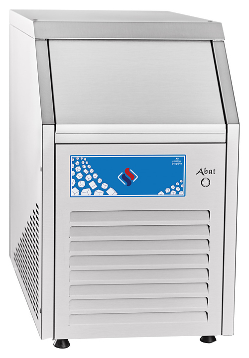 Льдогенератор Abat ЛГ-24/06К-02 предназначен для производства кубикового льда на предприятиях общественного питания и торговли. Модель оснащена отодвигающейся вовнутрь дверцей, системой автоматического отключения в случае отсутствия подачи воды на охлаждение конденсатора, утечки хладагента, повышенной нагрузки на мотор-редуктор и переполнения бункера льдом и регулируемыми по высоте ножками. Конструкция и съемная обшивка выполнены из высококачественной нержавеющей стали, контейнер для льда - из пищевого термоформованного пластика, стенки изолированны пенополиуретаном с высокой плотностью. Эксплуатация льдогенератора допускается при температуре окружающей среды от 10 до 35 °C и относительной влажности от 40 до 70%. Рекомендуется дополнительно приобрести водоумягчитель и фильтр-систему для очистки и смягчения воды. Подробннее о необходимости водоподготовки читайте здесь. Особенности: Циклы работы: