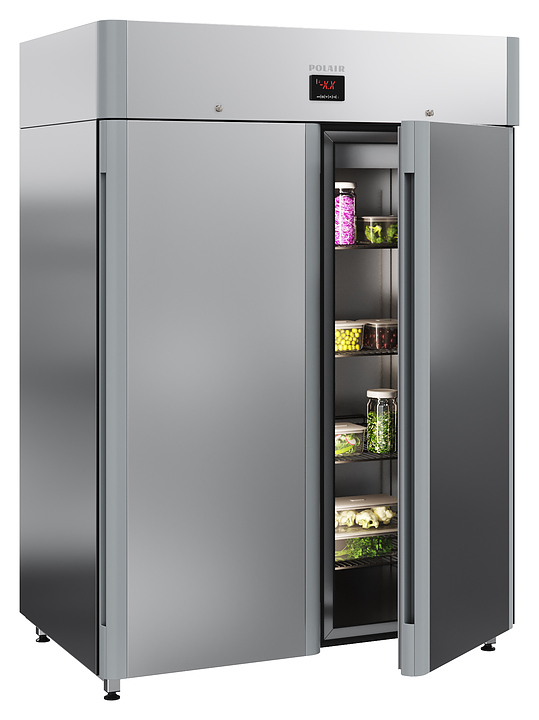 Холодильный шкаф POLAIR CV114-Gm Alu серии Grande-m предназначен для демонстрации и хранения продуктов на предприятиях общественного питания и торговли. Цельнозаливной корпус изготовлен из нержавеющей стали снаружи и изнутри (кроме задней стенки) и обеспечивает механическую прочность и долговечность шкафа, алюминиевые профили дверей и верхней панели подчеркивают премиальный дизайн. Оборудование рассчитано на работу при температуре окружающей среды до 40 °С и относительной влажности воздуха до 80%. Особенности: