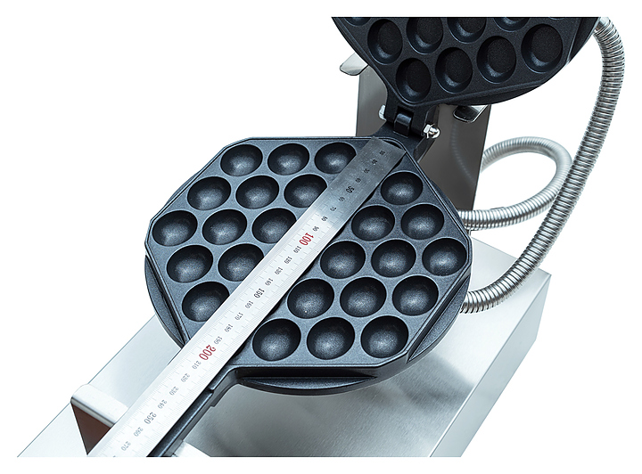 Вафельница Crazy Pan CP-WFM06HK используется на предприятиях общественного питания и торговли для выпекания гонконгских вафель в форме шестиугольников с шариками. Модель оснащена терморегулятором, 2 ТЭНами, звуковым таймером на 5 минут и переключателем питания со специальной защитой от влаги. Корпус выполнен из нержавеющей стали, рабочая поверхность - из чугуна с антипригарным покрытием. Дополнительные характеристики:
