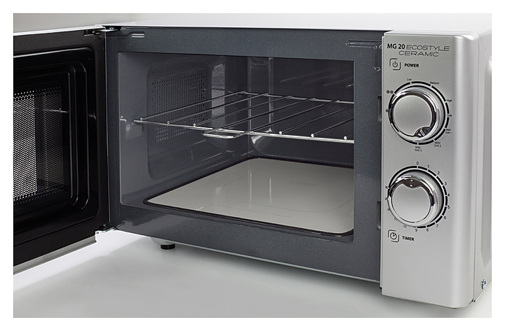 Микроволновая печь с грилем CASO MG20 Ecostyle Ceramic предназначена для разогрева, размораживания и приготовления продуктов в частных домах, квартирах, отелях и офисах. Модель оснащена электромеханической панелью управления c LED-дисплеем и дверцей со смотровым окном. Дно камеры выполнено из керамики, стенки имеют специальное легко моющееся покрытие. Режимы работы: