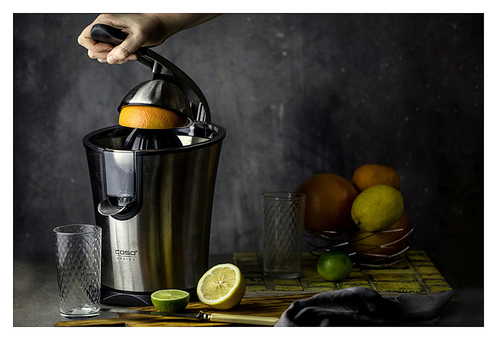 Cоковыжималка CASO CP 300 с ручным управлением предназначена для получения свежевыжатого сока апельсинов, лимонов и других цитрусовых в частных домах, квартирах, отелях и офисах. Модель оснащена тихим двигателем и нескользящими ножками. Корпус и сетчатый фильтр выполнены из нержавеющей стали, ручка имеет специальное мягкое покрытие. Особенности: