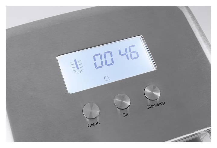 Льдогенератор заливного типа CASO IceChef Pro предназначен для получения кубикового льда, который используется для приготовления разнообразных коктейлей, алкогольных и прохладительных напитков в частных домах, квартирах, отелях и офисах. Модель оснащена дисплеем, на котором отображается текущее время, компрессором и смотровым окном. Корпус выполнен из нержавеющей стали. В комплект поставки входит совок. Особенности: