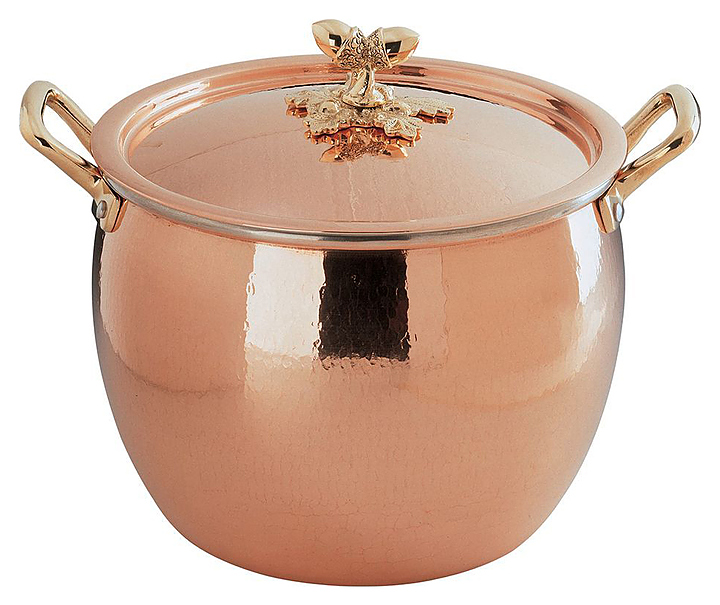 Кастрюля Ruffoni 3102-16B используется на предприятиях общественного питания для приготовления широкого спектра блюд. Модель оснащена изготовленными вручную фиксированными ручками и плотно закрывающейся крышкой, позволяющей сохранить тепло внутри кастрюли. Кастрюля подходит для использования со всеми видами плит, кроме индукционных. Изделие выполнено из листовой меди, обеспечивающей максимальную теплопроводность и контроль температуры, декорированные ручки - из бронзы, внутренняя поверхность покрыта нереакционноспособным лужным оловом. Особенности: