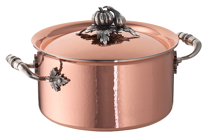 Кастрюля Ruffoni CG20 используется на предприятиях общественного питания для приготовления широкого спектра блюд. Модель оснащена жаропрочными ручками и крышкой с декорированной ручкой. Кастрюля подходит для использования со всеми видами плит, кроме индукционных. Изделие выполнено из листовой меди, обеспечивающей максимальную теплопроводность и контроль температуры, с сердчеником из алюминия, ручка на крышке - из посеребренной латуни, боковые ручки, заклепки и винты - из нержавеющей стали, внутренняя поверхность покрыта безопасной нержавеющей сталью. Особенности: