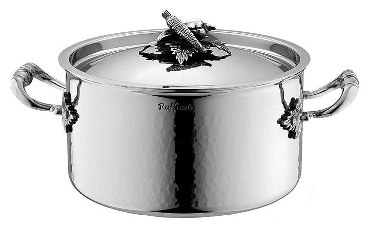 Кастрюля Ruffoni R16 используется на предприятиях общественного питания для приготовления широкого спектра блюд. Модель оснащена жаропрочными ручками и крышкой с декорированной ручкой. Кастрюля подходит для использования со всеми видами поверхностей, кроме духовки. Изделие выполнено из 5-слойного металла, состоящего из чередующихся слоев нержавеющей стали и алюминия, ручка на крышке - из посеребренной латуни, боковые ручки, заклепки и винты - из нержавеющей стали. Особенности: