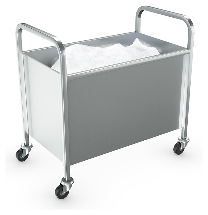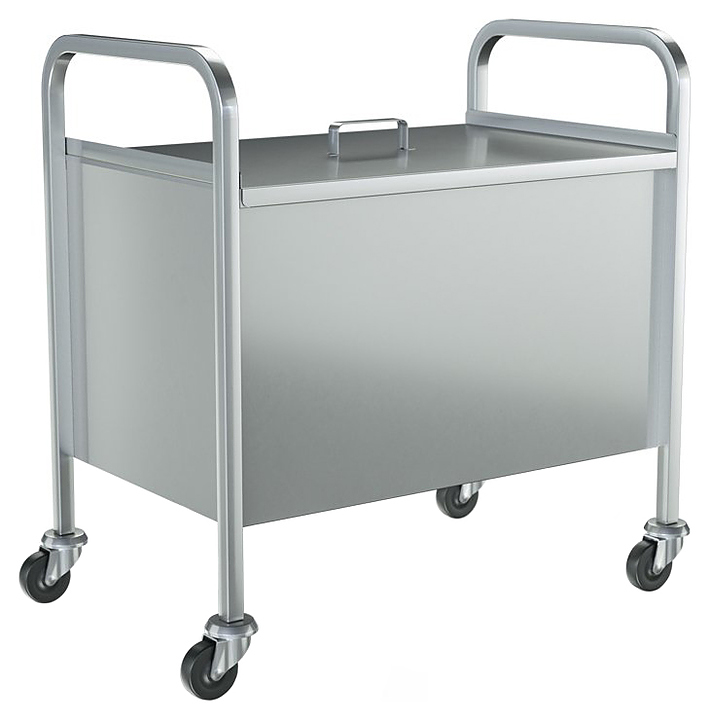 Тележка ATESY ТМ-Л-100-02 серии Люкс используется на предприятиях общественного питания и торговли, а также в производственных цехах для накопления предварительно просеянной в мукопросеивателе муки и транспортировки ее к месту использования. Модель оснащена герметичным бункером со съемной крышкой. Бункер и крышка выполнены из нержавеющей стали AISI 304, рамы - из нержавеющей трубы AISI 304 сечением 25х25 мм. Особенности: