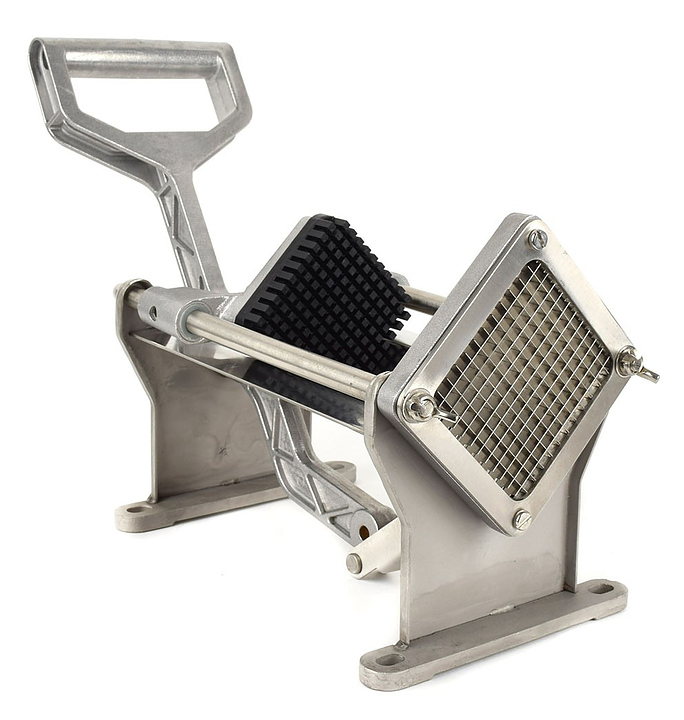 Слайсер FoodAtlas VC-1 предназначен для нарезки картофеля фри по-деревенски на предприятиях общественного питания и торговли. Корпус выполнен из нержавеющей стали. В комплект поставки входят 4 сменных лезвия и 4 толкателя. Дополнительные характеристики: