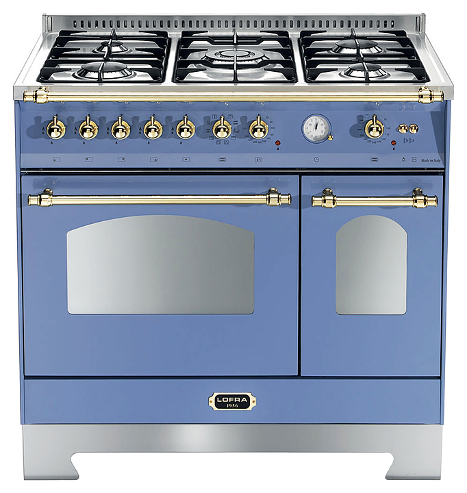 Газовая плита Lofra RLVD 96 MFTE предназначена для приготовления широкого спектра первых и вторых блюд, а также выпечки и десертов в домашних условиях. Модель оснащена 2 духовыми шкафами и 5 газовыми конфорками Sabaf Series III разного размера. Варочная панель выполнена из матовой нержавеющей стали, решетки варочной панели - из чугуна, дверь снабжена вставкой из тройного закаленного стекла, два слоя которого обладают отражающими свойствами для меньшего рассеивания тепла. В комплект поставки входят глубокий противень, 2 решетки для духового шкафа, 3 чугунные решетки для варочной поверхности, форсунки для сжиженного газа. Варочная панель: