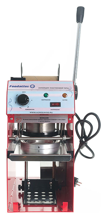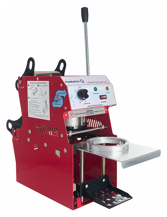 Полуавтоматический запайщик стаканов Foodatlas WY-863 используется на предприятиях общественного питания и торговли для запечатывания пластиковых стаканов крышками из алюминиевой фольги или пленки валкелид. Аппарат может использоваться для упаковки стаканчиков из полистирола, полипропилена, ламистера и вспененного полистирола. Модель оснащена оптическим датчиком фотометки для автоматического перематывания пленки после каждого цикла и ножом для обрезки пленки. Дополнительные характеристики: