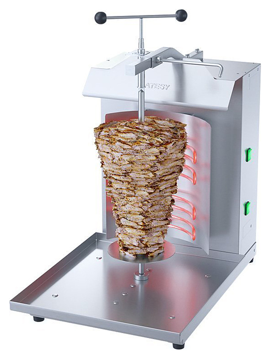 Электрический гриль ATESY Шаурма 2-Эл-05-Оц используется на предприятиях общественного питания и торговли для приготовления мясной начинки популярного блюда шаурма (шаверма). Модель оснащена 2 трубчатыми электронагревателями (ТЭНами). Корпус выполнен из оцинкованной стали, все элементы, контактирующие с пищей - из материалов, разрешенных для контакта с пищевыми продуктами. Особенности: