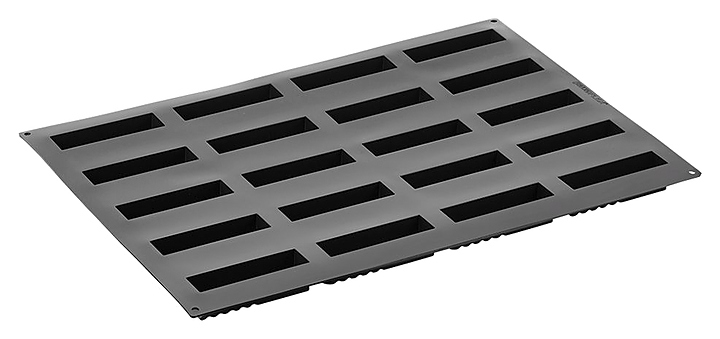Форма для пирожных Pavoni PAVOFLEX PX026 Бревно используется в пекарнях и кондитерских, на предприятиях пищевой промышленности и общественного питания для выпекания или заморозки различных десертов из жидкого теста, мусса, шоколада, желе, суфле или мороженого. Модель позволяет получить продукт в объемном виде. Изделие выполнено из силикона, который обладает высокой гибкостью, легко моется и способен выдерживать температуру от -40 до 280 °С. Дополнительные характеристики: