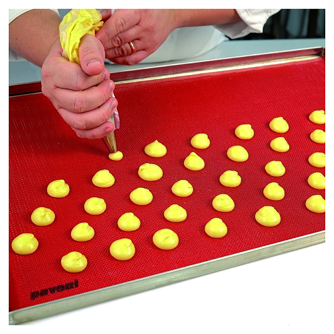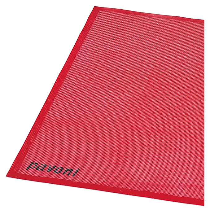 Силиконовый коврик Pavoni FOROSIL64 используется в пекарнях и кондитерских, на предприятиях пищевой промышленности и общественного питания для выпечки хлебобулочных и кондитерских изделий, работы с карамелью, мастикой и тестом, а также для заморозки полуфабрикатов. Микроперфорация обеспечивает равномерное выпекание, предотвращая образования пузырьков воздуха в кондитерских изделиях. При выпечке изделие укладывается на противень и используется в качестве антипригарного покрытия. Дополнительные характеристики: