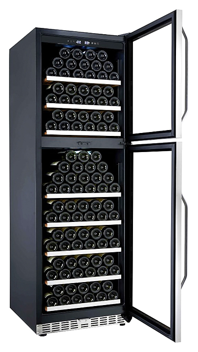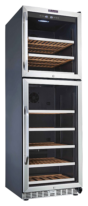 Винный шкаф La Sommeliere MZ2V165 серии Prestige создает оптимальные условия для сохранения всех вкусовых свойств разливного вина в ресторанах, специализированных магазинах, подсобных складских помещениях, в частных домах или квартирах. Оборудование оснащено 2 дверями с рамками из нержавеющей стали, стеклами с защитой от ультрафиолетовых лучей, 7 выдвижными и 1 фиксированной полками из бука. Особенности: