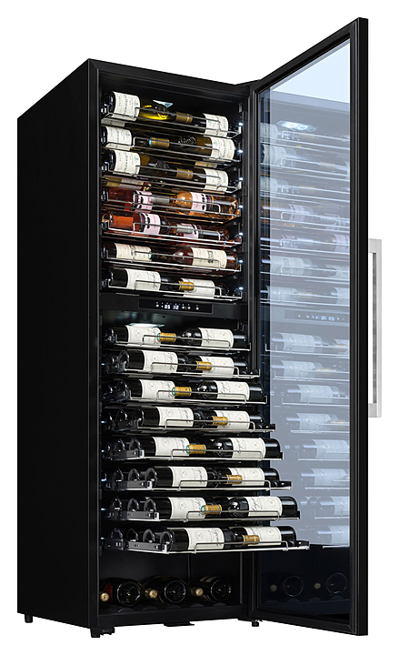 Винный шкаф La Sommeliere PF160DZ серии Professional создает оптимальные условия для сохранения всех вкусовых свойств разливного вина в ресторанах, специализированных магазинах, подсобных складских помещениях, в частных домах или квартирах. Оборудование оснащено дверью со стеклом с защитой от ультрафиолетовых лучей и 15 выдвижными полками из металла. Особенности: