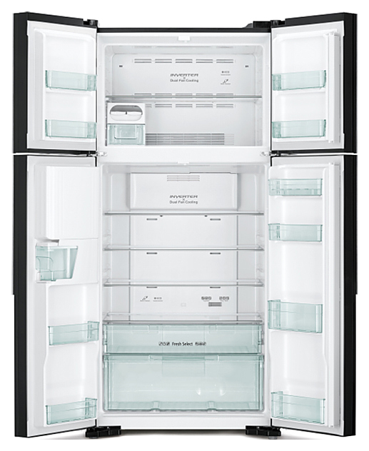 Холодильник Hitachi R-W 662 PU7 серии Deluxe Glass предназначен для охлаждения, заморозки и хранения скоропортящихся продуктов и напитков, а также для приготовления льда в частных домах, квартирах, отелях и офисах. Модель оснащена сенсорной панелью управления и индикатором мощности охлаждения. Холодильник поставляется в цвете черное стекло. Холодильная камера: