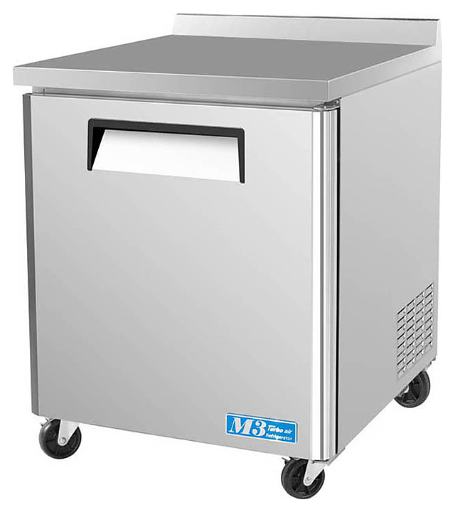 Холодильный стол Turbo air CMWR-28 предназначен для раскатки теста, обработки, охлаждения и кратковременного хранения продуктов и напитков на предприятиях общественного питания и торговли. Корпус выполнен из нержавеющей стали (гальванизированная сталь на оборотной стороне и внизу) с применением пожаробезопасных стенок толщиной 60 мм, уплотнения - из АБС-пластика, пол - из нержавеющей стали с алюминиевыми вставками по бокам и сзади оборудования, регулируемые полки - из толстой стальной проволоки с виниловым покрытием. Особенности: