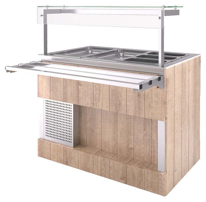 Холодильный прилавок Refettorio Capital RC13AS используется в составе линии раздачи Capital на предприятиях общественного питания и торговли для выкладки, демонстрации и последующей раздачи холодных закусок и третьих блюд, требующих хранения в охлажденном состоянии. Модель оснащена охлаждаемой столешницей с углублением и нишами для установки гастроемкостей. Столешница выполнена из кварцевого агломерата, рабочая ванна - из нержавеющей листовой стали, фасад - из ламинированного МДФ. Гастроемкости в комплект поставки не входят и приобретаются отдельно. Особенности:
