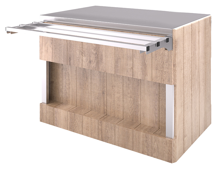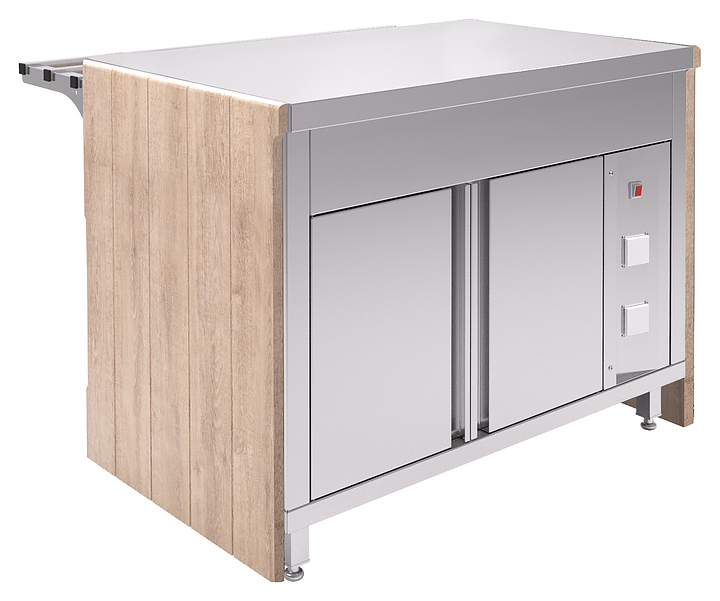 Нейтральный прилавок Refettorio Capital RN13В используется в составе линии раздачи Capital на предприятиях общественного питания и торговли для выкладки продуктов и напитков, не требующих подогрева или охлаждения, а также для установки дополнительного оборудования и приспособлений. Модель оснащена вместительной столешницей. Столешница выполнена из нержавеющей листовой стали толщиной 1,2 мм, фасад - из ламинированного МДФ. Особенности: