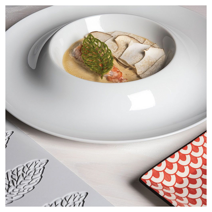 Форма Pavoni Gourmand GG028 Перо используется в пекарнях и кондитерских, на предприятиях пищевой промышленности и общественного питания для выпекания или заморозки различных десертов из жидкого теста, мусса, шоколада, желе, суфле или мороженого. Модель позволяет получить продукт в объемном виде. Изделие выполнено из силикона, который обладает высокой гибкостью, легко моется и способен выдерживать температуру от -40 до 280 °С. Дополнительные характеристики: