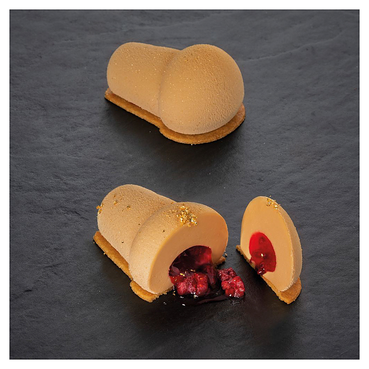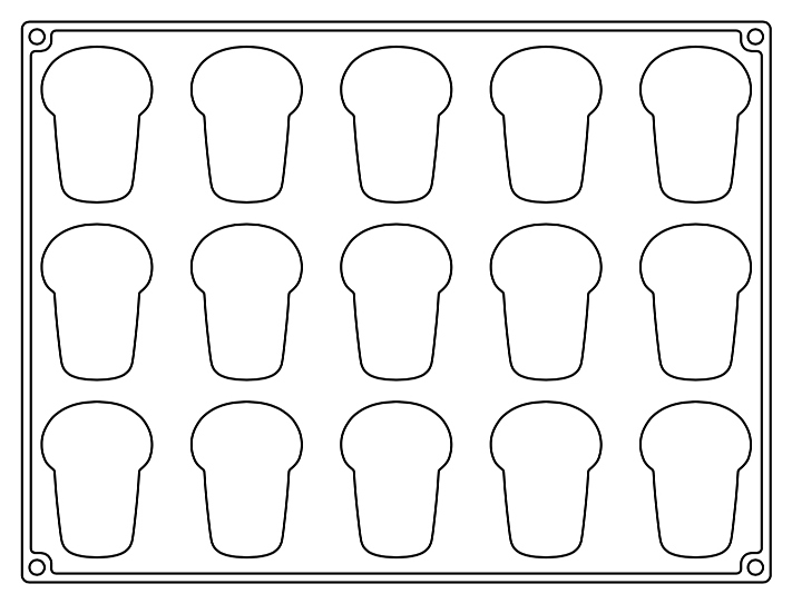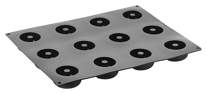 Форма для пирожных Pavoni PAVOFLEX PX4382 Ром-баба используется в пекарнях и кондитерских, на предприятиях пищевой промышленности и общественного питания для выпекания или заморозки различных десертов из жидкого теста, мусса, шоколада, желе, суфле или мороженого. Модель позволяет получить продукт в объемном виде. Изделие выполнено из силикона, который обладает высокой гибкостью, легко моется и способен выдерживать температуру от -40 до 280 °С. В комплект поставки входит куттер. Дополнительные характеристики: